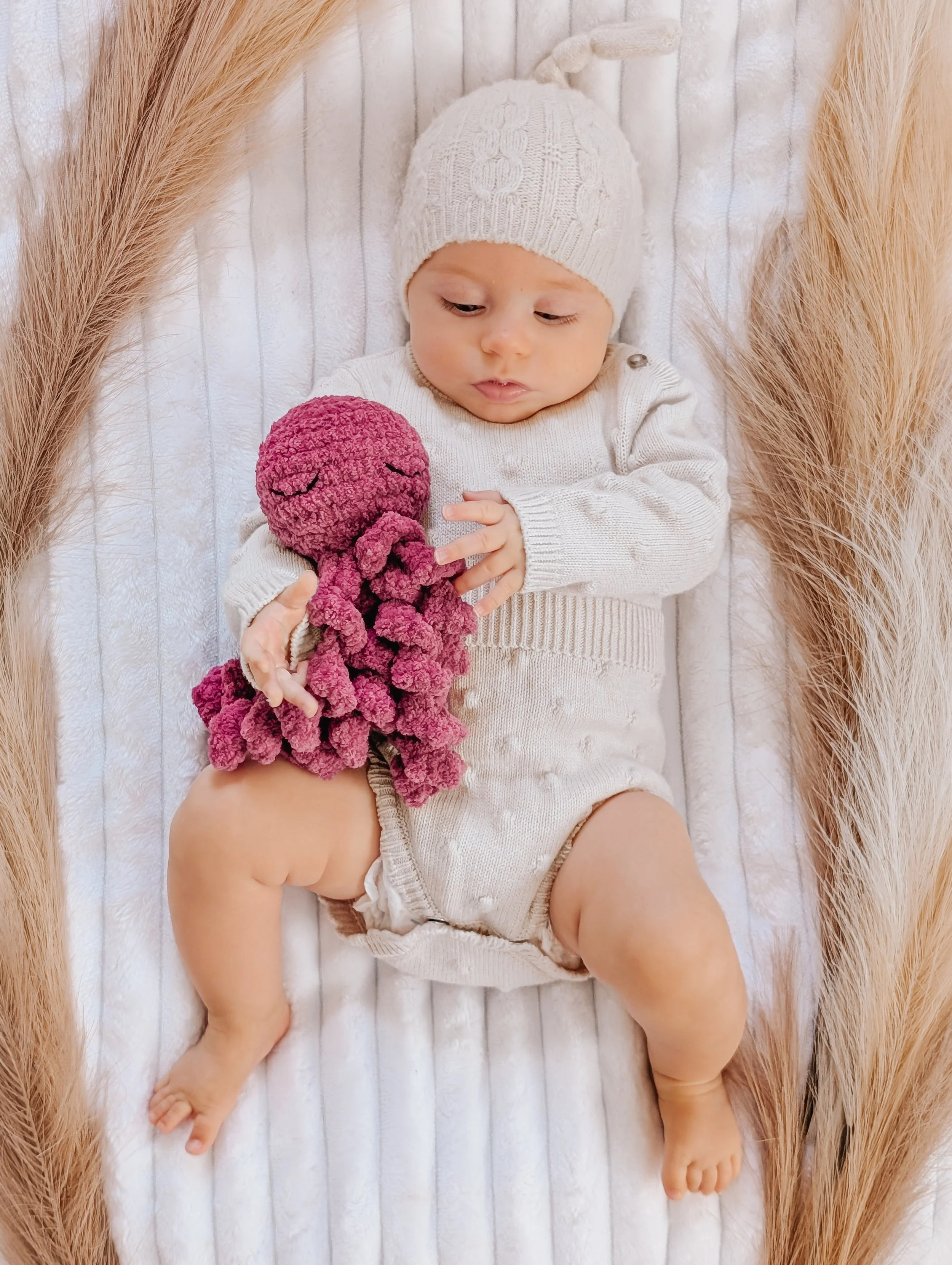 Each snuggler is lovingly crocheted by hand—not mass-produced. Each piece is stitched with attention to detail and care for tiny hands. Please allow 1–2 weeks for production before shipping.